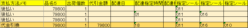⑤代金引換に変更になったデータを全部後払いの下に行ごと移動させる