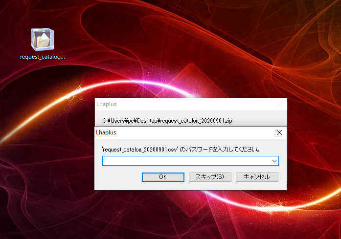 - 解凍パスワードをコピーし、ファイルを開けたら、メールは処理済みにする。