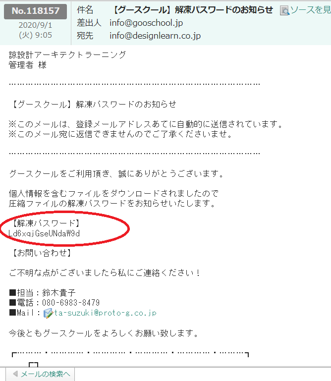 - グースクールのデータを開くためには解凍パスワードが必要である。